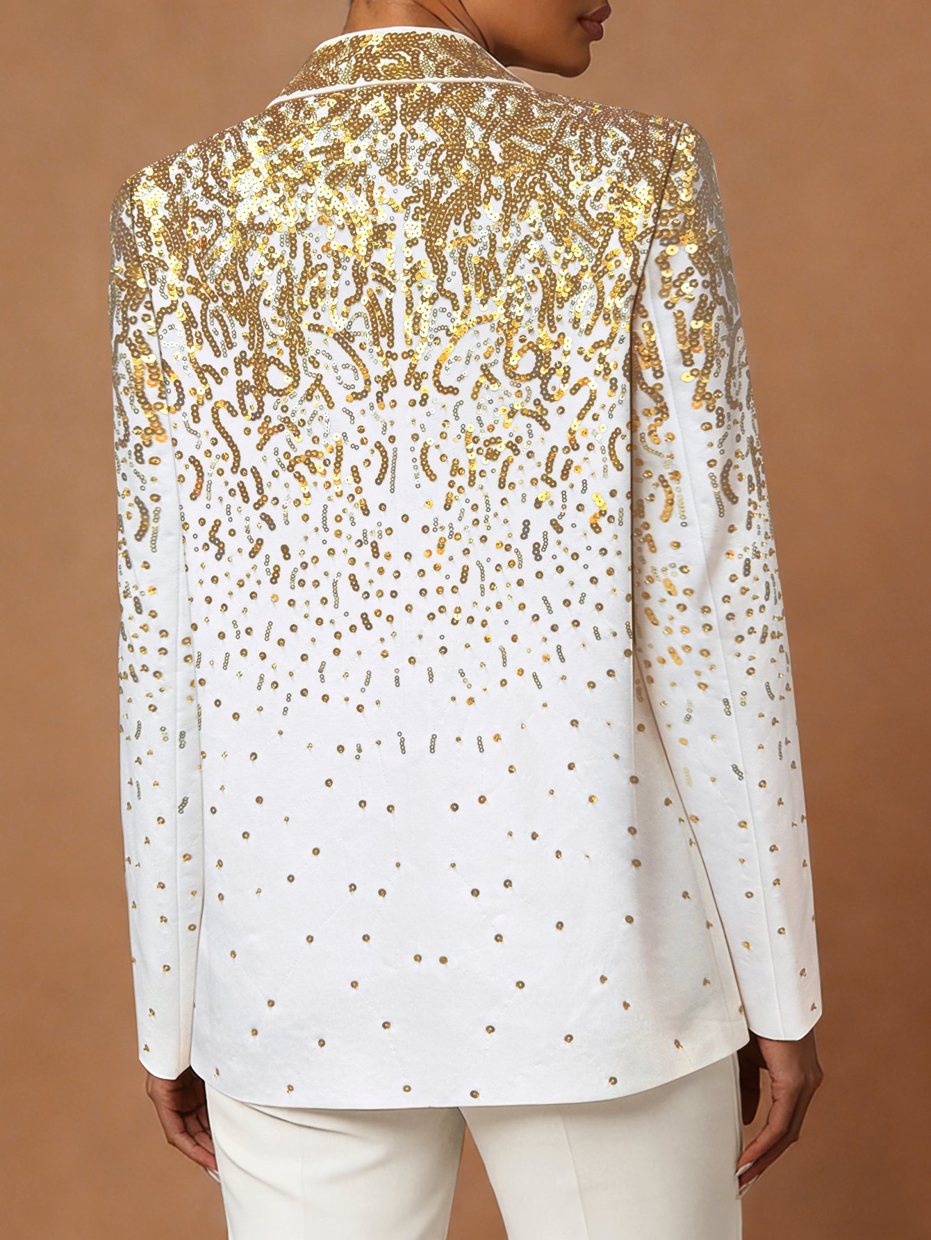 High-End Custom Women's Blazer - Gold Sequin Upper Body & White Base