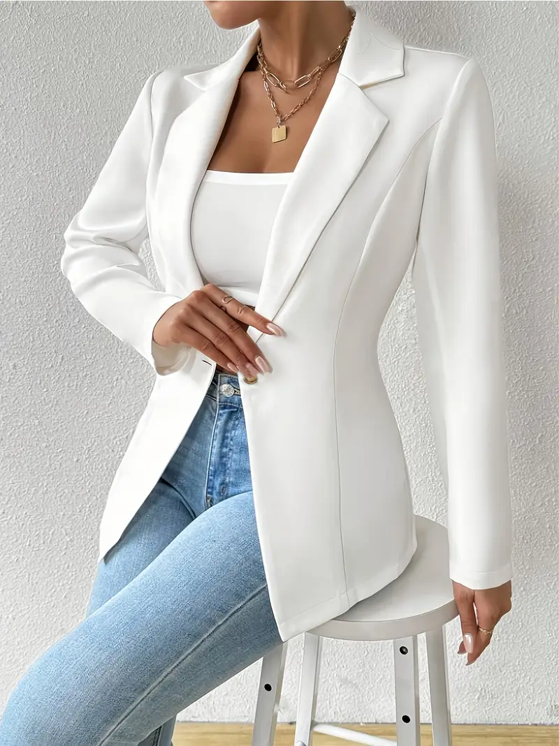 Women's High-End Custom Slim-Fit Blazer with White Open Collar - Elegant Tailored Outerwear